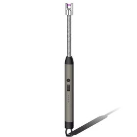 Flameless Lighter Rechargeable USB LED Battery Display; Safety Switch; Wider Arc For Cooking Fireworks (Color: grey)